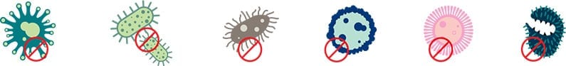 Cerafusion™テクノロジーはオゾンを生成し、空気中や表面にウイルス、バクテリア、カビ、アレルギー物質、悪臭や汚染を99.9%除去します。